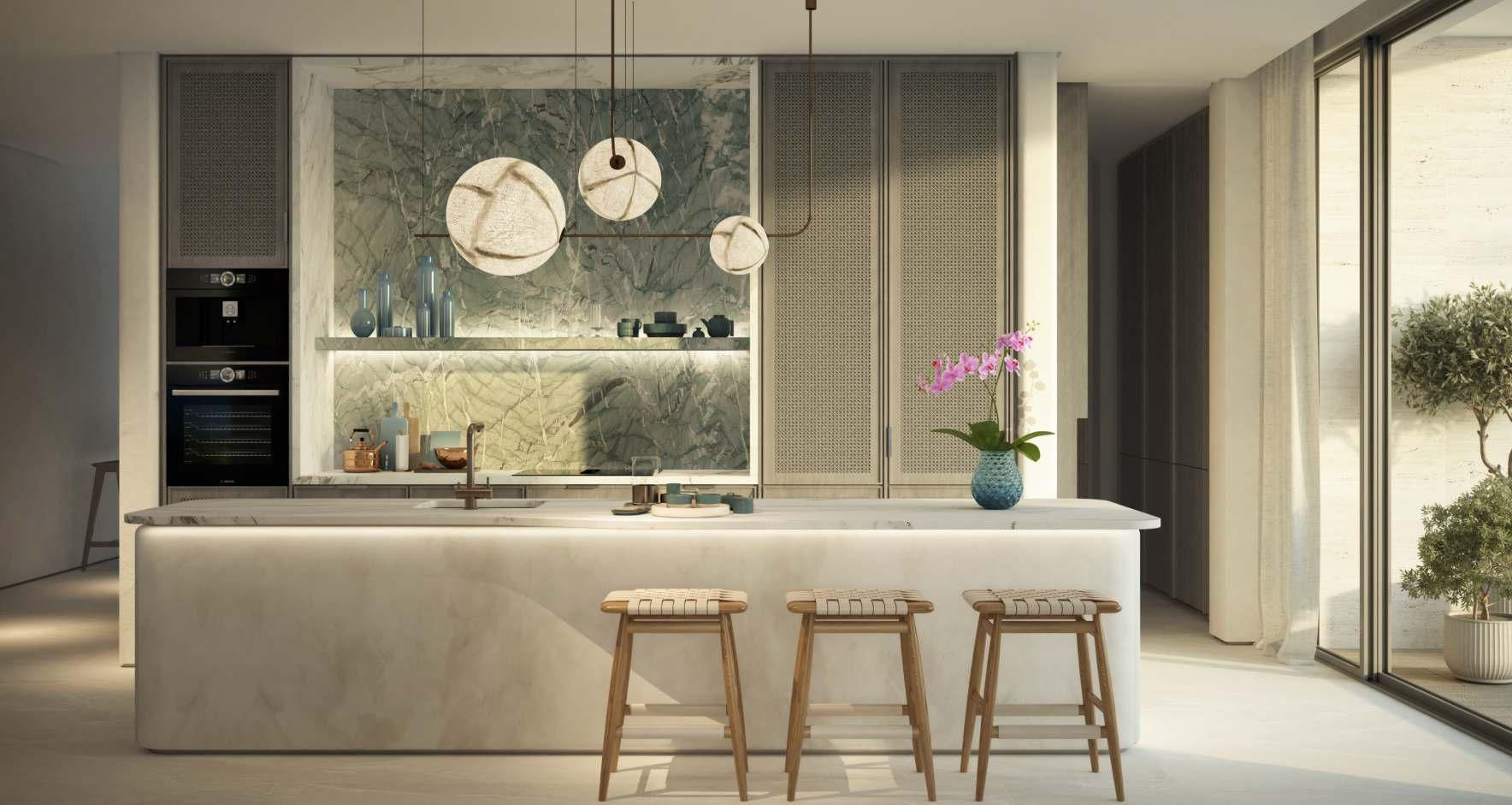 Villas include built-in kitchen appliances, generous terraces, and layouts designed to maximize sea and skyline views.