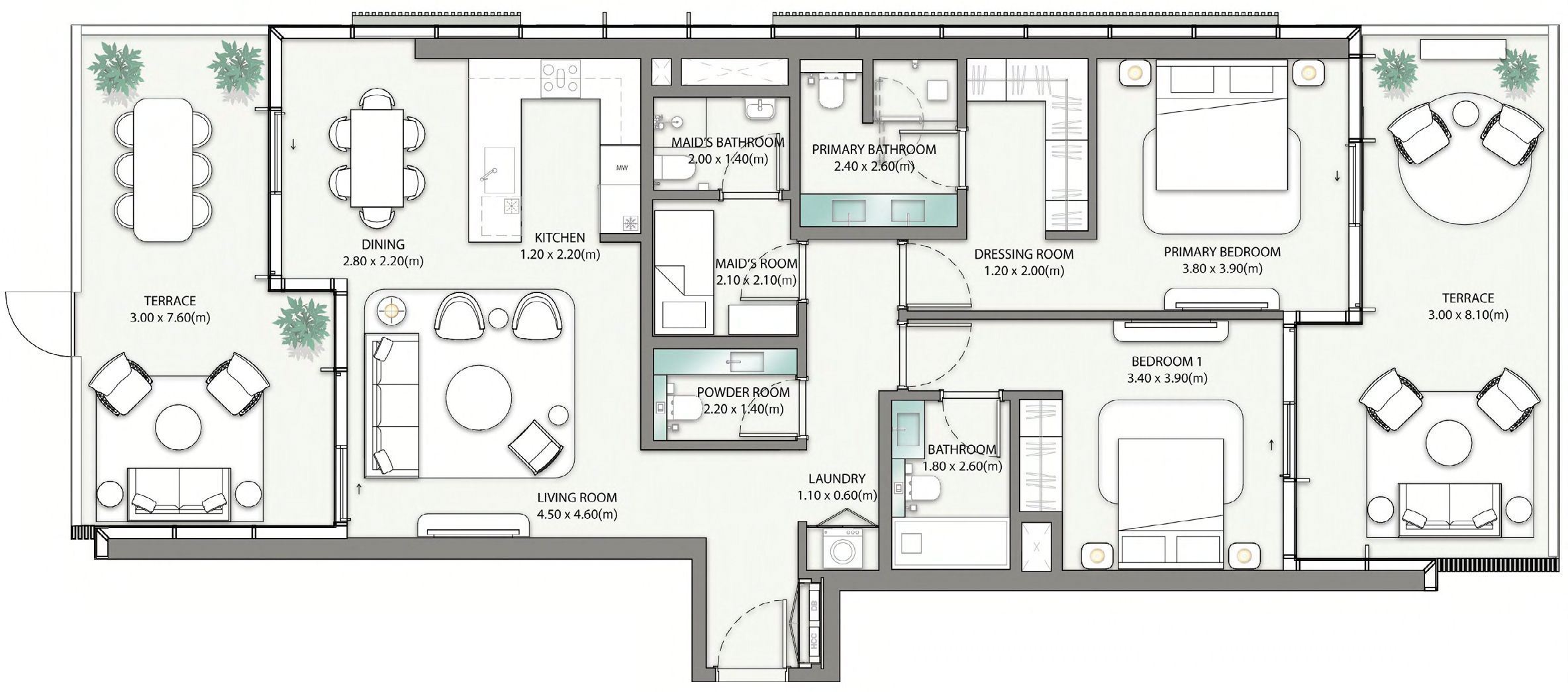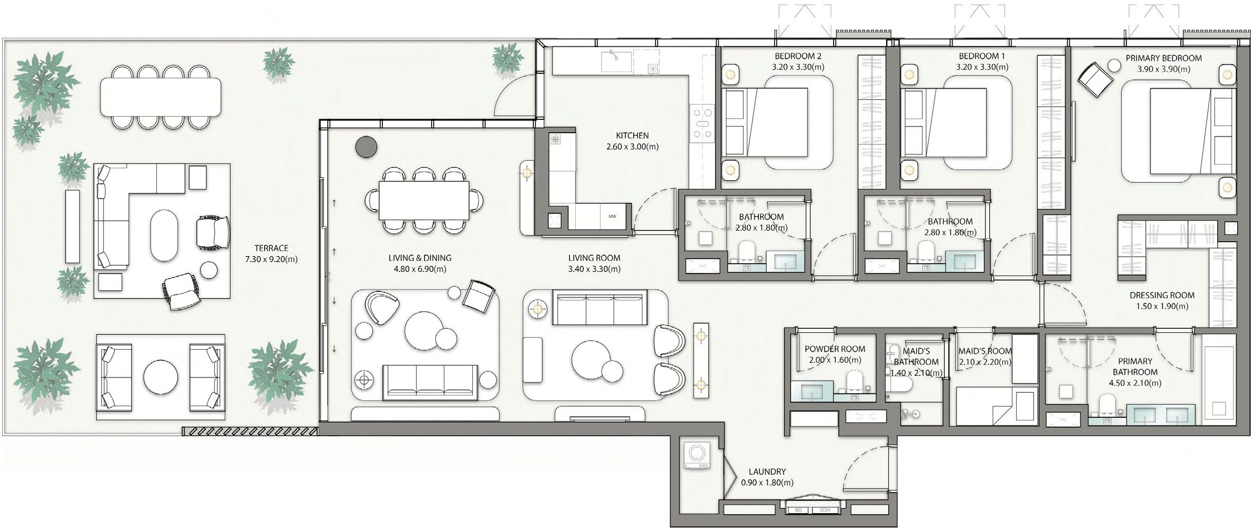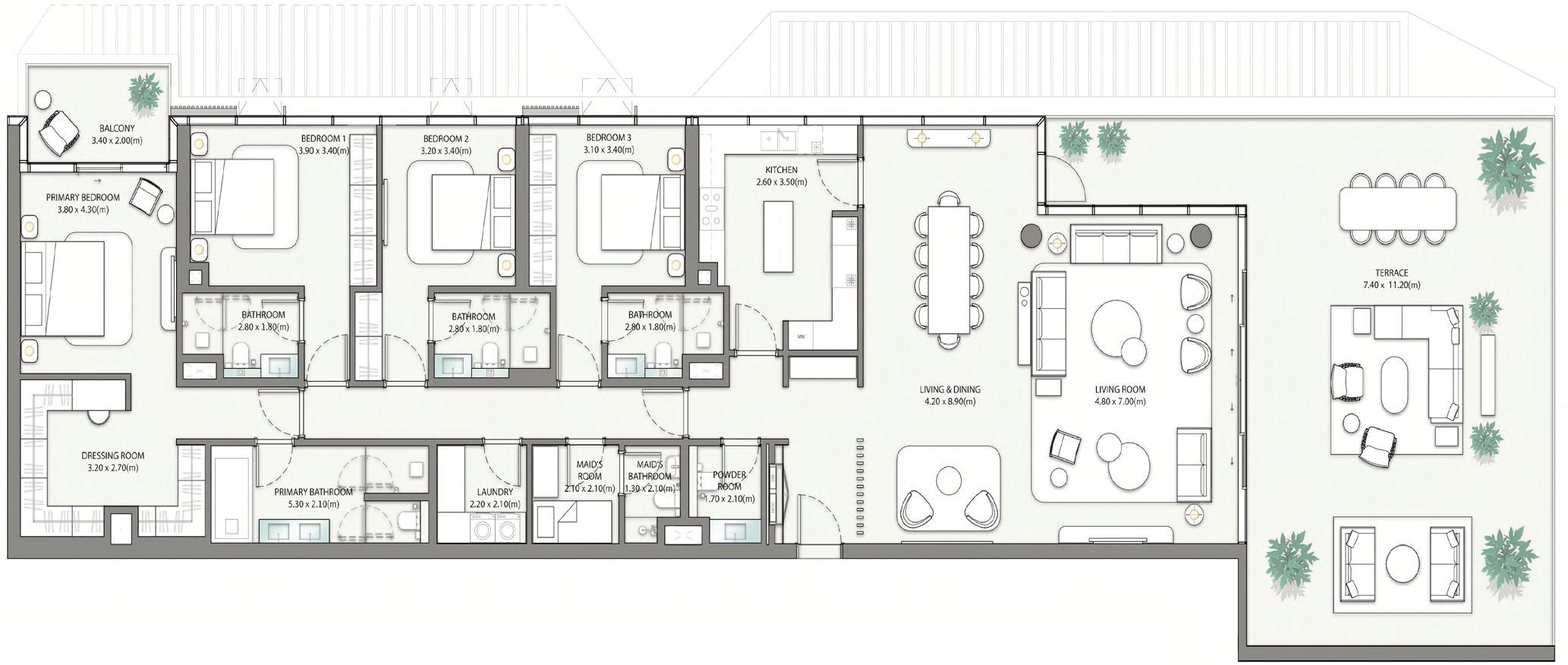 Residences range from apartments to townhouses and penthouses, featuring open-plan layouts, floor-to-ceiling glazing, and private terraces or balconies. Select ground-floor homes open directly to landscaped decks and the beach, while upper-level residences enjoy expansive terraces and panoramic sea views.