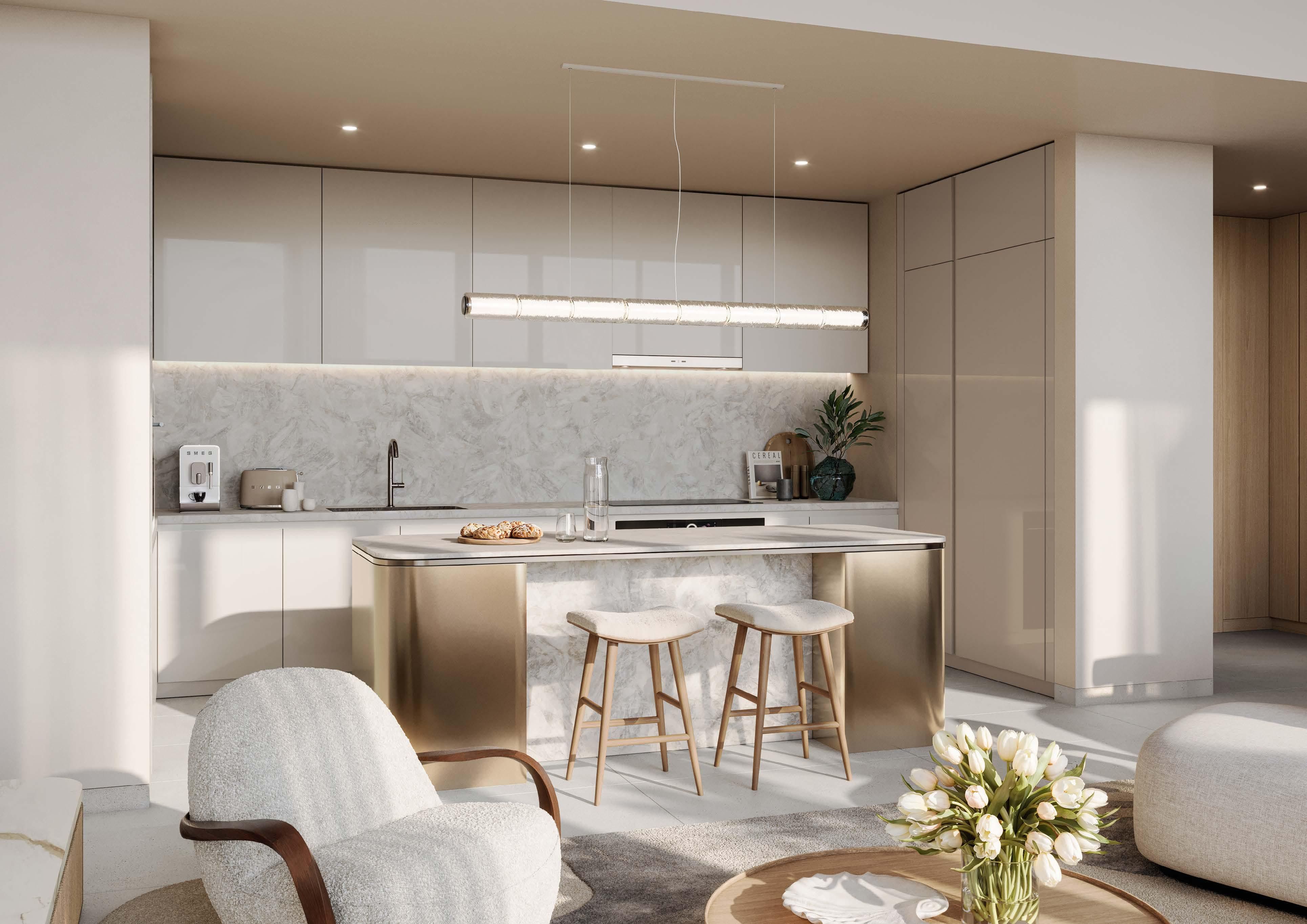 The project comprises 212 residences across three buildings, combining landscaped gardens, infinity pool facilities, and extensive leisure amenities. Homes feature open layouts and floor-to-ceiling glazing, designed to maximise light, privacy, and connection to the sea, creating a calm, resort-oriented residential environment.